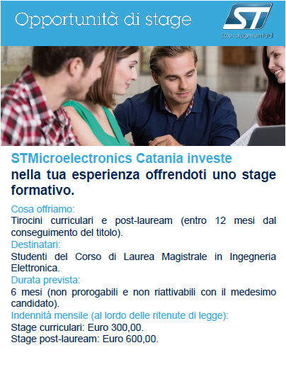 Si avvisano gli studenti che STMicroelectronics recentemente propone le seguenti attività per tesi e stage post-lauream
