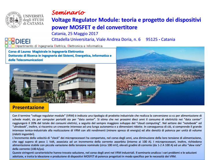 Le lezioni si terranno presso l'aula riunioni del centro di calcolo. L'ultimo incontro si terrà presso lo stabilimento di Micron, Catania.