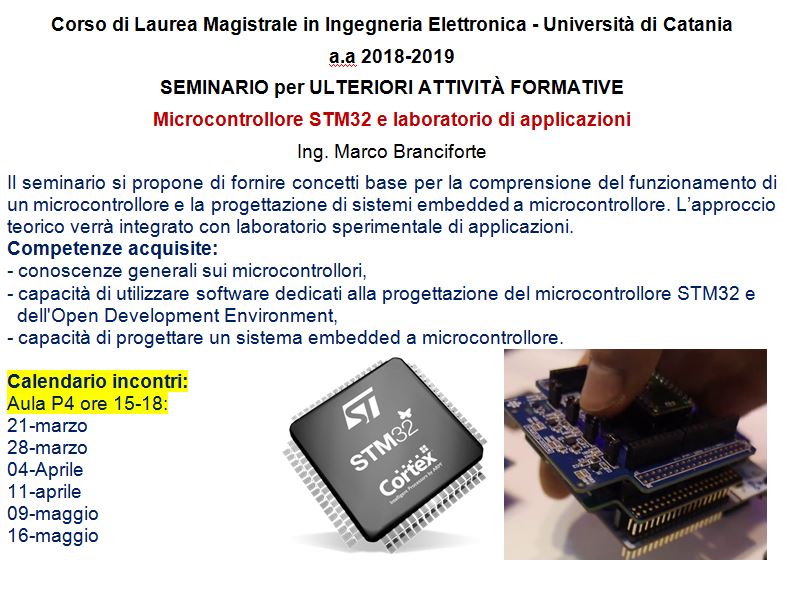Si avvisano gli studenti partecipanti al corso da 3 CFU (Microcontrollore STM 32 e laboratorio di applicazioni)