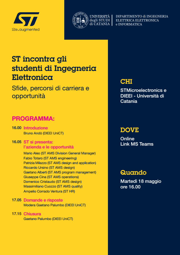 ST incontra gli studenti di Ingegneria Elettronica, 18 Maggio - ore 16.00