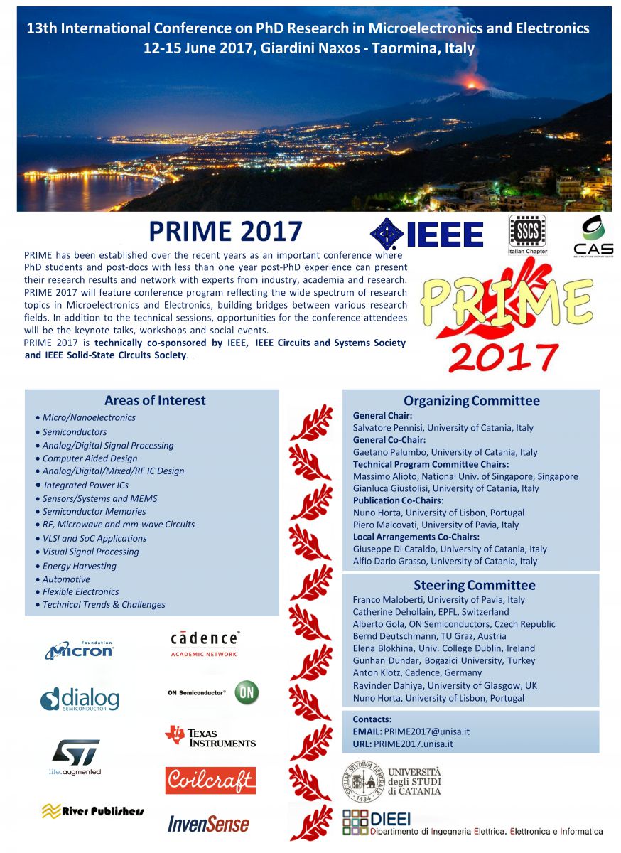 Il DIEEI organizza la 13a edizione della conferenza PRIME (International Conference on PhD Research in Microelectronics and Electronics) che si terrà a Giardini Naxos il 12-15 giugno 2017.