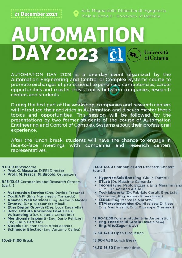 Giovedì 21 dicembre alle 9, nell'aula magna dell'Edificio per la Didattica di Ingegneria, evento organizzato dal corso di studi in "Automation Engineering and Control of Complex Systems"